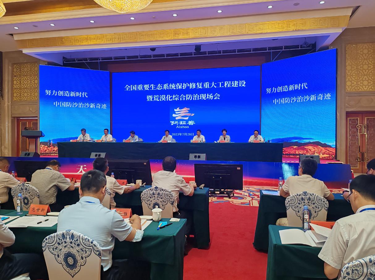 7月27—28日,国家发展改革委农村经济司在内蒙古自治区阿拉善盟组织召开全国重要生态系统保护修复重大工程建设暨荒漠化综合防治现场会。与会代表认真学习习近平总书记重要讲话精神,实地参观了宗别立百万亩梭梭林基地、内蒙古西部荒漠化综合治理一期等生态保护和修复项目,内蒙古、山西、湖北、云南等省区发展改革委及内蒙古自治区阿拉善盟、甘肃省民勤县等项目实施单位分别作了交流发言,国家林草局荒漠司有关同志就荒漠化综合防治作了专题授课。农村经济司主要负责同志就深入学习贯彻习近平总书记在全国生态环境保护大会和“6·6”巴彦淖尔座谈会上的重要指示精神,加快推进“双重”、“三北”等重大生态工程建设作了具体部署。各省、自治区、直辖市及计划单列市、新疆生产建设兵团发展改革委代表参加了会议。
