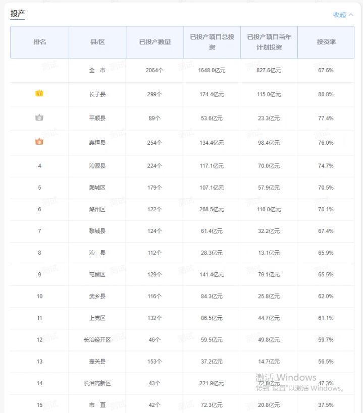 投产项目情况、按不同维度汇总查询