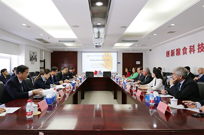 乌拉圭驻华大使费尔南多·卢格里斯参加会见。国家粮食和物资储备局副局长卢景波、总工程师颜波及相关司局单位负责同志参加会见。